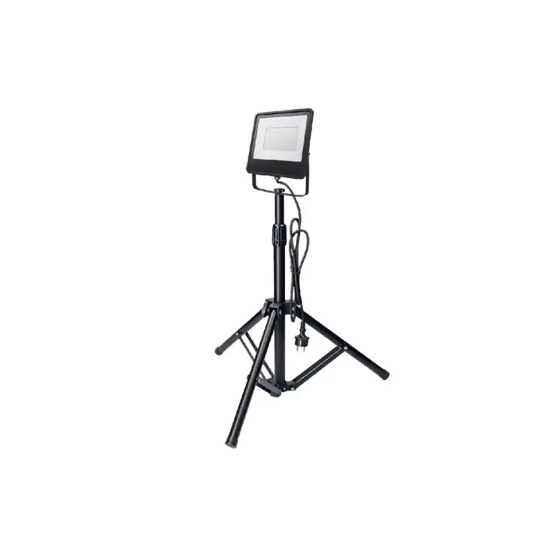 This EDM LED Spotlight on Tripod 6400k - 100W 8000 Lumens - Black is perfectly suited if you are looking for a cool colour temperature to illuminate both indoors and outdoors with great power provided by the 8000 lumens. With its IP65 protection rating, the spotlight offers good resistance against water splashes and humidity, making it usable outdoors without fear of damage. The tripod is an additional asset for using the spotlight with more flexibility. Its height is adjustable and ranges from 50 to 90 cm. The power supply is via a cable with a length of 140 cm.