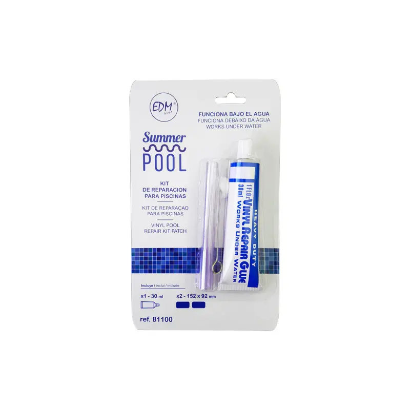 Very handy, this 30 ml EDM repair kit will help you carry out a simple repair on your pool liner in just a few minutes without the need to empty it.