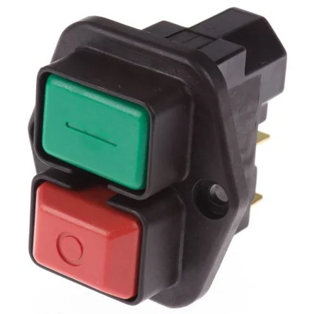 DIN/VDE 0660 pt 102; IEC 947-4-2. Please note RS Stock Number ; 398-5279 398-5279 comes equipped with an extra contact. No-Volt Release Switch Modules. Rocker ; pushbutton on-off switches which automatically disconnect in the event of power loss. Nominal operating voltage 230V; switching current 16A Prevents re-start of machinery or equipment in unsafe condition Extra contact versions permit remote tripping Panel mount, cutout size (45.2x21.7mm) Protection kits available, snap-in pushbutton comes complete with protection kit Double pole isolation Back boot (square version) gives additional protection Complete mains unit ideal for workbench installation IP ratings are: Rocker (IP40), Rocker with cap (IP54), Pushbutton (IP65)