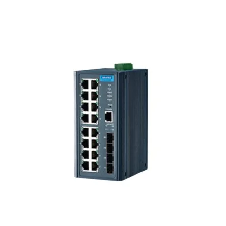 The EKI-7720G is a managed 20 port industrial Ethernet switch with RJ-45 connectivity.
