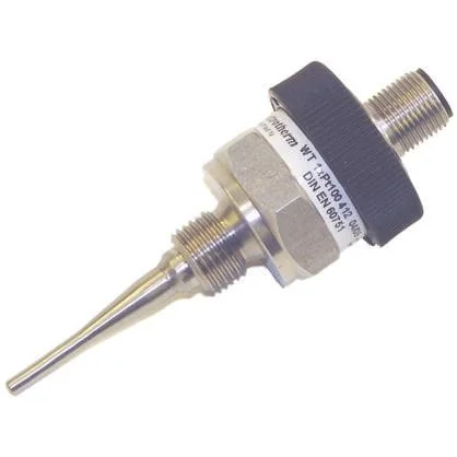 Compact PT100 RTD sensor for accurate temperature readings up to +100°C.