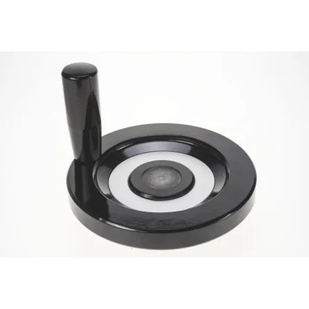 Rimmed Phenolic. Black high strength reinforced phenolic With undrilled oxide steel hub Screw-in revolving handle Resistant to oils, solvents and most chemicals