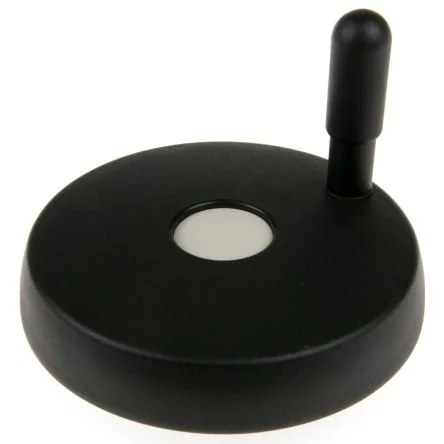 High-impact Polymer. Matt black, high impact resistant polymer with screw fit revolving handle Steel insert with standard H7 tolerance hole covered at one end with push-fit boss cap Resistant to oils, greases and most industrial chemicals