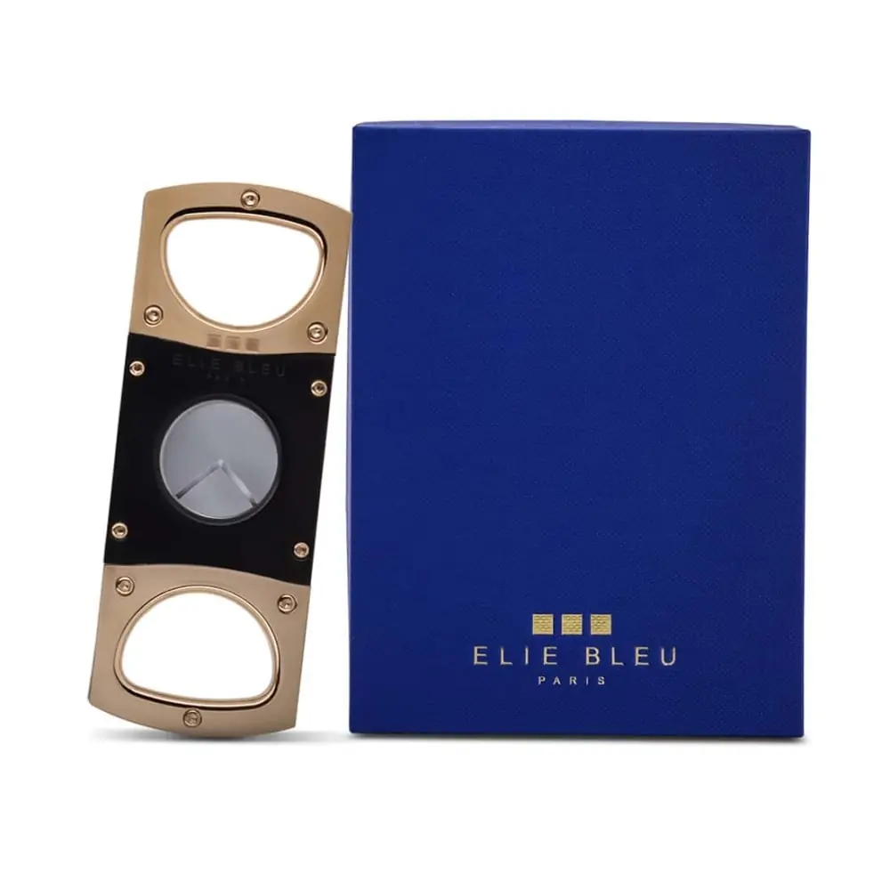 elie bleu paris offers you an exceptional range of cigar accessories including the black and rose gold cigar cutter. this wonderful smoker's object will seduce you with its elegant design in particular with its diamond shaped knives and its very resistant frame. armed with a great know-how the french brand of luxury smoking articles offers you to cut your cigars with extreme precision. the blades are made from stainless steel which will ensure an excellent lifespan for your equipment. the maximum cutting diameter is 2.3 cm.