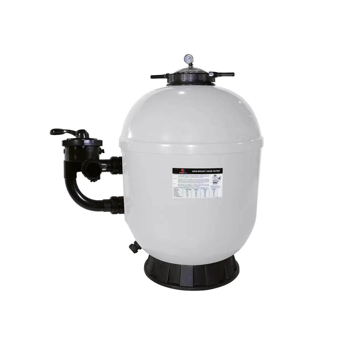 The Emaux SPRING D500 Side Sand Filter is engineered to deliver high-performance filtration for swimming pools, ensuring crystal-clear water. Designed with a 500 mm diameter, this filter is constructed from non-corrosive polyester material, offering exceptional resistance to UV rays and chemical agents. It features a 6-way side valve and a transparent cover, facilitating easy inspection and maintenance. With a sand charge capacity of 100 kg, it effectively filters pools up to 40 m³ in volume. The filter is compatible with various filter media, including glass gravel, providing an economical and efficient solution for maintaining clean and healthy pool water.