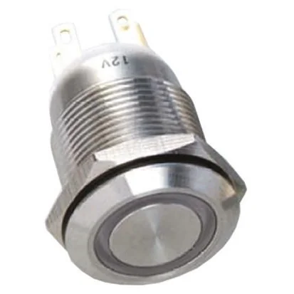 R Series illuminated Anti-vandal pushbutton (19 mm). These R series are a range of 19 mm vandal resistant push buttons, ideal for use across a number of industries and applications such as:-. • Access Control systems. • Machinery and factory equipment. • Exposed public areas such as ticket machines, kiosks and vending machines. • And many more. Features and Benefits. • Vandal Resistant push buttons. • Impact resistant to IK09 – protected against 10 joules impact. Equivalent to impact of 5 kg mass dropped from approximately 200 mm above impacted surface. • Sealed to IP65 – totally protected against dust and protected against low pressure jets of water from all directions – limited ingress permitted. • Mounted in 19mm holes. • Illuminated – ring or central dot LED illumination, available in several different colours. They will emit a light when pressed. • Long life service making these ideal for using in public spaces, exposed or aggressive industrial environments.
