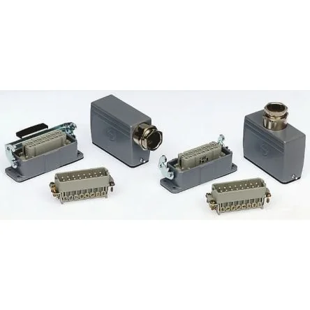 H-A Complete Metric 16 Way Panel Mount Kit. This H-A series connector kit has everything you need for a complete PCB power connection solution. The Kit features a top entry hood that connects to the locking PCB mounting base for secure mating. With a robust metal construction, this H-A series connector kit is extremely durable. This Kit Includes:. • A Top Entry Connector Hood • A Connector Base with Locking Lever • A 16 Way Male Connector Insert • A 16 Way Female Connector Insert • An M25 Gland. Features and Benefits:. • IP65 • Temperature range: -40°C to +125°C • Insulation group: VDE 0110 group B