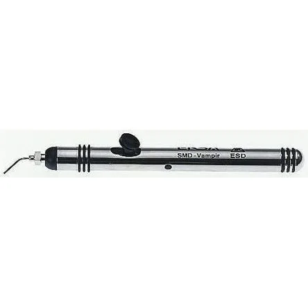 SMD Vacuum Pipette Tool SVP 100. Vacuum pipette for a secure, easy and precise way to handle SMD components. Various anti-static suction cups (4 mm; 7 mm; 9 mm) and curved stainless steel suction nozzle to suite a wide range of applications. SVP 100 comes with a curved suction nozzle and three suction cups.