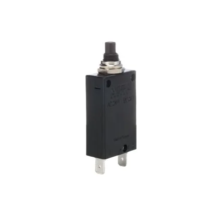 UL; CSA; VDE (EN60934). 2-5700 Series Thermal Circuit Breaker. 3/8 inch or M12 (mm) moulded thread-neck single-hole panel mounting 6.3-0.8 mm blade terminals Small physical size Tease free, Trip free mechanism for long life Push to release/push to reset On/off status indication Overload and short circuit protection Typical life 5000 operation at twice nominal current rating Mainly for motors, transformers, power supplies and extra low voltage systems IEC Classification S/TO