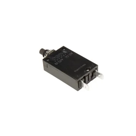 UL; CSA; VDE (EN60934). 2-5700 Series Thermal Circuit Breaker. 3/8 inch or M12 (mm) moulded thread-neck single-hole panel mounting 6.3-0.8 mm blade terminals Small physical size Tease free, Trip free mechanism for long life Push to release/push to reset On/off status indication Overload and short circuit protection Typical life 5000 operation at twice nominal current rating Mainly for motors, transformers, power supplies and extra low voltage systems IEC Classification S/TO