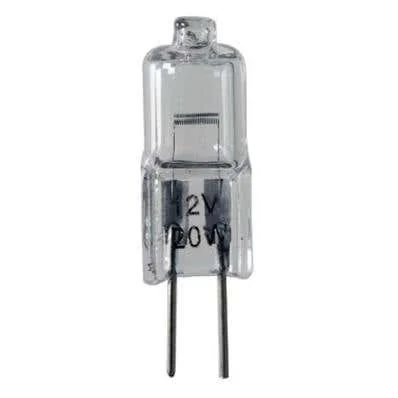 The Euromarine G4 12V Halogen Bulb is designed to provide reliable and warm interior lighting for marine environments. This capsule-type bulb features a G4 base and is available in three wattages: 5W, 10W, and 20W, each with corresponding current ratings of 0.4A, 0.85A, and 1.7A, respectively. The bulb operates at a voltage of 12V, making it suitable for various boating applications.