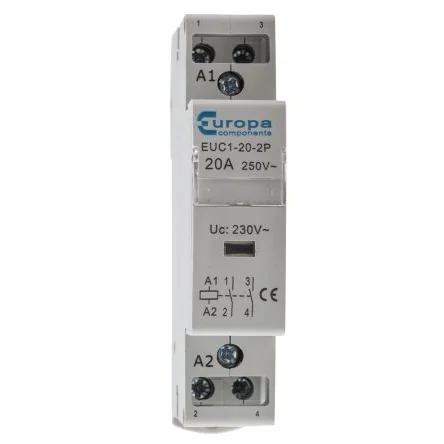 Europa EUC1 Contactor, 230 V ac Coil, 2-Pole, 20 A, 4 kW, 2NO, 240 V ac - EUC1-20-2P