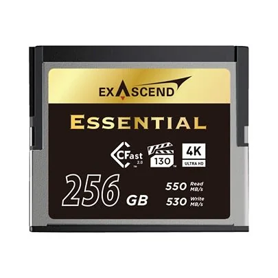 The Exascend CFast Card features 256GB capacity and 520MB/s read speed for efficient data storage.