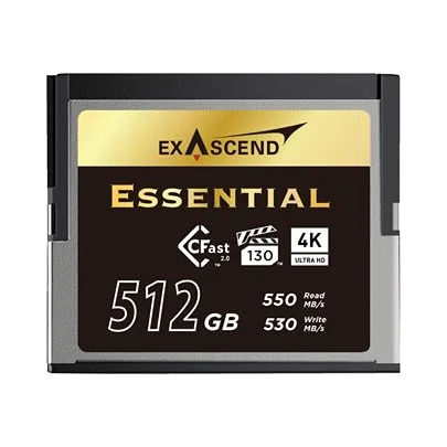 The Exascend CFast Card features 512GB capacity and 520MB/s read speed for efficient data storage.