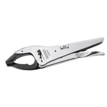 Durable locking pliers with a secure grip and chrome finish, perfect for various tasks.