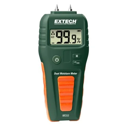 Accurately measure moisture levels with the Extech MO55, featuring a digital display and battery-powered convenience.