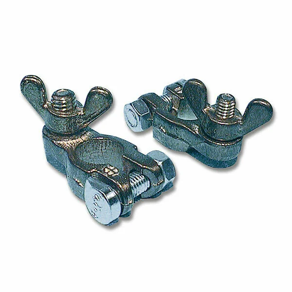 Galvanised steel battery clamps sold in pairs with pin and butterfly nut for easier tightening.