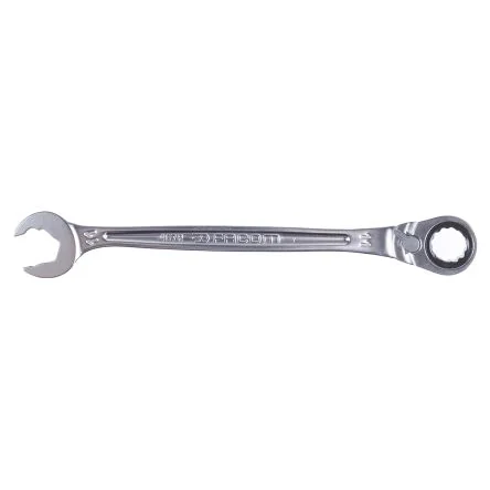 Facom Combination Ratchet Spanner. Introducing the 2 in 1 combination spanner from Facom ‘s 467R range, designed and created by industry professionals as a versatile tool that can be used in a variety of applications and tasks. The range of ratchet spanners was designed with the user in mind, focusing on ergonomics and providing solutions to the main pain points of standard ratchet spanners. This combination spanner has ratchet ring end and open end with a ratchet action when fully engaged and provides a built-in switch that avoids accidental reversing and ensures a secure fit. It complies with the highest levels of standardisation to ensure it is fit for use in everyday environments like a garage, plumbing or maintenance tasks and therefore makes it an essential piece in any toolbox. Features and Benefits:. Ratchet combination wrench with a Facom designed 2 in 1 ratchet ring and open-end shape Ratchet ring end allows for easy tightening due to the high strength mechanism without wasting time or the need for re-positioning Open head end allows for high strength and increased longevity Built in switch that avoids accidental reversing Chrome finish for easy cleaning Chrome Vanadium Steel Small in length, making it a compact and versatile tool, an essential addition to any toolbox Covered by Facom Tools Lifetime Guarantee Available in various Metric sizes. What is the spanner made from?. The combination ratchet spanner is made from chrome vanadium. Chrome vanadium is structurally strong, and its toughness enables it to withstand high fatigue and wear. It also has the added benefit of being resistant to corrosion and oxidisation, improving the life of the tool. How does a ratchet spanner work?. A ratchet spanner or wrench uses a mechanism which allows an open-ended, flare or ring head to turn a fastener in one direction but not the other while remaining fitted to the fastener head. By turning the spanner over or flicking a lever, it changes the direction of movement. Does this spanner feature a reversing lever?. Yes