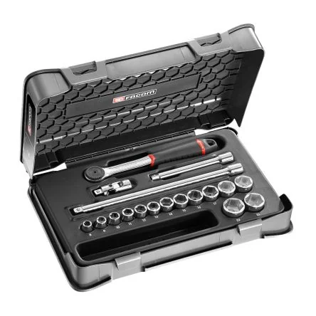Facom 18-Piece Metric 3/8 in Standard Socket Set with Ratchet, 6 point - J.161-2P6PF