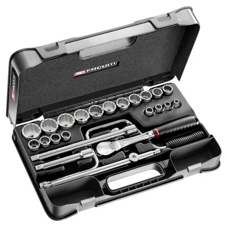 Facom 25-Piece Imperial 1/2 in Standard Socket Set with Ratchet, 12 point - SL.161-3P12U