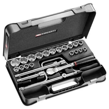 Facom 25-Piece Imperial 1/2 in Standard Socket Set with Ratchet, 6 point - SL.161-3P6U