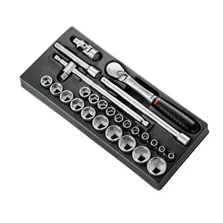 This 26-piece metric socket set by Facom includes a ratchet for efficient and versatile use.