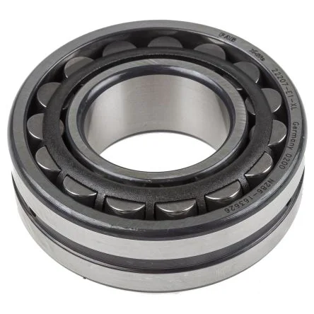 Spherical roller bearings are double row, self-retaining units comprising solid outer rings with a concave raceway, solid inner rings and barrel rollers with cages. The inner rings have cylindrical or tapered bores. The symmetrical barrel rollers orient themselves freely on the concave outer ring raceway. As a result, shaft flexing and misalignment of the bearing seats are compensated, Many sizes of spherical roller bearings are of an X-life design. These bearings have improved kinematics and optimised surfaces, are made from higher performance materials and do not have a rigid central rib.Radial and axial load capacity Compensation of angular misalignments Reduced adjustment angle Bearings with cylindrical bore Bearings with tapered bore Bearings with adapter sleeve or withdrawal sleeve Sealing Lubrication Operating temperature Cages X-life bearings Suffixes