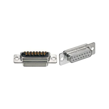 Reliable 15 way D-sub connector socket for panel mounting with solder cup for easy installation.