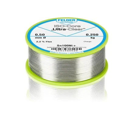 The Felder Lottechnik soldering wire has high-quality, lead-free solder wire for hand and machine soldering in the field of electrical engineering, electronics and also electro mechanics. It used Sn100Ni+ alloy and it has high temperature resistance and no spattering during the melting process.Lowest outgassing and neutral smell Fast wetting and high spreading Easily removable flux residue from the solder iron tips