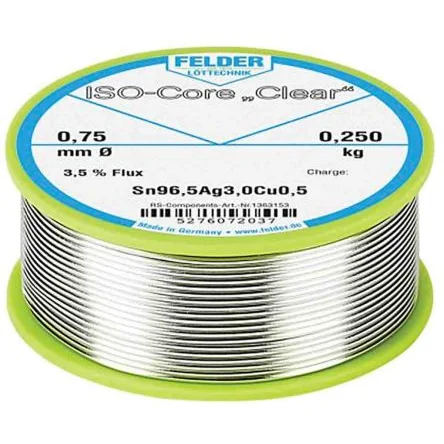 The Felder Lottechnik soldering wire has high-quality, lead-free solder wire for hand and machine soldering in the field of electrical engineering, electronics and also electro mechanics. It used Sn96,5Ag3Cu0,5 alloy and it has high temperature resistance and no spattering during the melting process.Lowest outgassing and neutral smell Fast wetting and high spreading Easily removable flux residue from the solder iron tips
