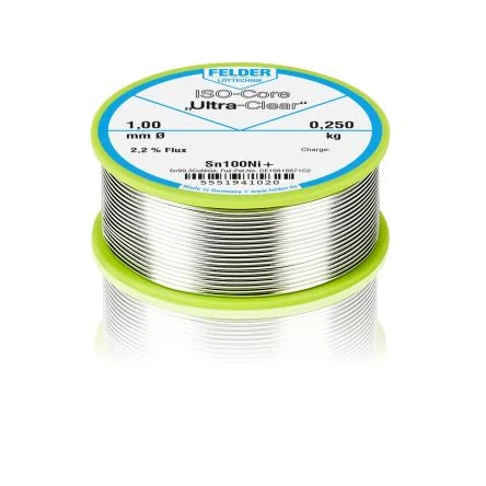 The Felder Lottechnik soldering wire has high-quality, lead-free solder wire for hand and machine soldering in the field of electrical engineering, electronics and also electro mechanics. It used Sn100Ni+ alloy and it has high temperature resistance and no spattering during the melting process.Lowest outgassing and neutral smell Fast wetting and high spreading Easily removable flux residue from the solder iron tips