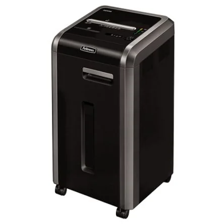 The Fellowes Powershred 225Mi is a micro cut shredder designed for office use, with an 18-sheet capacity and 60L bin.