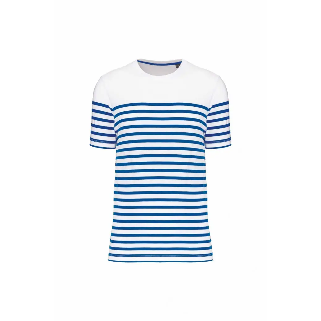 100% organic cotton. Straight cut. Enzyme wash. Round neck with 1x1 ribbing. Knitted stripes. Neck tape. Double needle finish at the cuffs and hem.