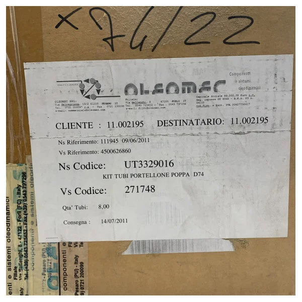 - Specific model: kit tubi portellone poppa D74