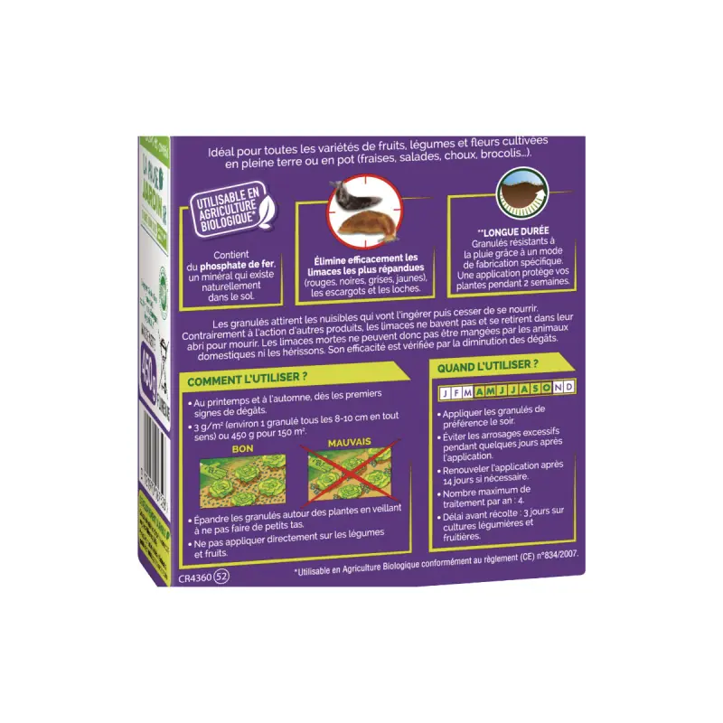 Your garden or vegetable patch is overrun with slugs? The FERTILIGÈNE slug pellets will be your ally in getting rid of these pests. Indeed, by applying these baits, the slugs will die either by ingestion or through contact. Furthermore, other animals will not be threatened by these products.