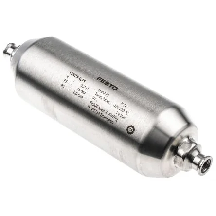 Efficiently store compressed air with Festo's 750 ml reservoir, designed for high-pressure applications.