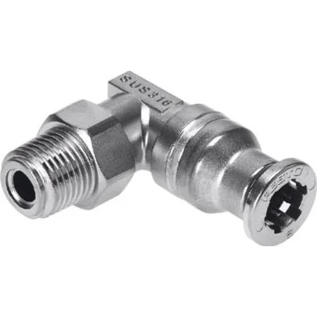 Reliable Festo elbow adaptor for R 1/8 male connections, designed for versatile positioning.