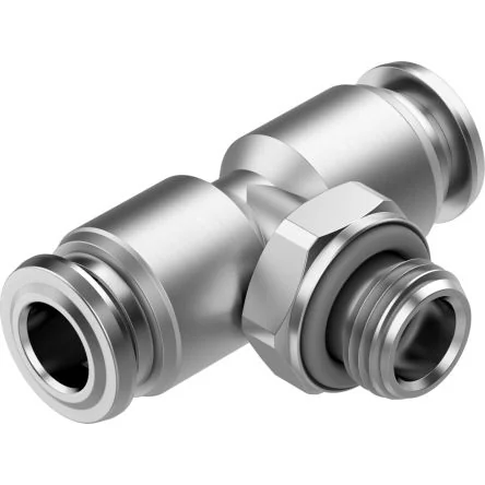 Reliable push-in fitting for pneumatic systems, ensuring efficient threaded-to-tube connections.