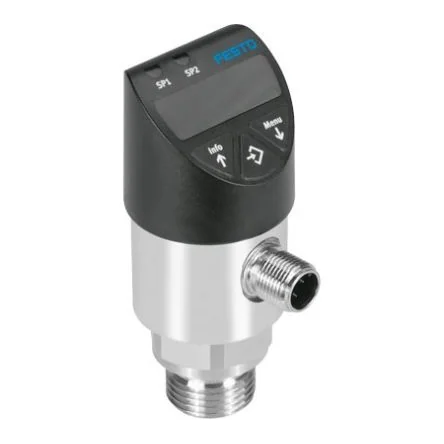 Reliable Festo pressure sensor for air, gas, and liquid with IP65/IP67 rating and 10 bar max pressure.
