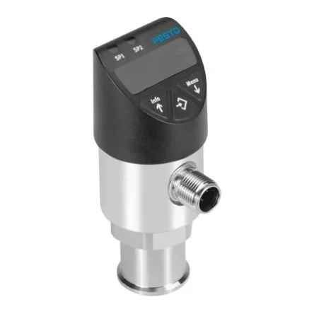 Reliable Festo pressure sensor for air, gas, and liquid with IP65/IP67 protection.