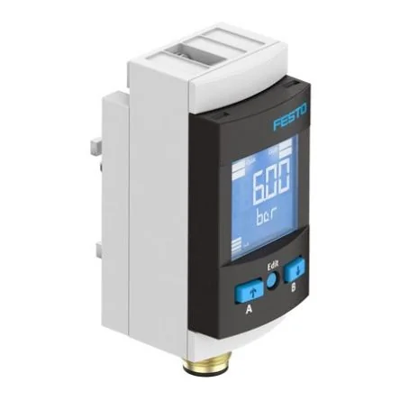 Reliable Festo pressure sensor for air and inert gas with IP65 rating and 10 bar max pressure.