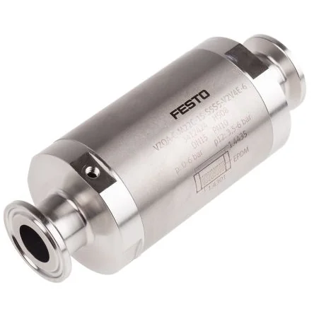 FESTO VZQA Pneumatic Pinch Valves. The VZQA pneumatic actuated pinch valve is a 2 way valve fitting and is used for controlling the flow of different materials in the tubing or pipe. The valve is either open or closed, both ensure that there is minimum flow resistance and help prevent the fitting becoming blocked or clogged up. An open valve enables free flowing material, however the sleeve will close when the fitting is pressurised, therefore shutting off the flow in the tube or pipe. This is ideal for shutting off liquids containing solid particles or solid materials. A closed valve will open when the valve is pressurised, which releases the flow of material in the tube or pipe, and then will close again when the pressure stops due to the spring in the fitting. This valve is ideal for use with liquid or gases such as air. Features and Benefits. Normally open (N/O) and normally closed (N/C) options Simple and easy to install Pneumatic fittings valve Easy to clean hygienic design Elastomer pinch valve sleeve shut off Sealing cartridge can be replaced without specialist tools Multiple connector variants Stainless steel and aluminium housing End cap available for demanding applications