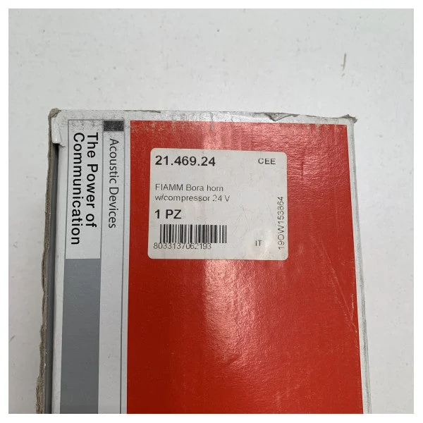 Powerful 24V air horn compressor by Fiamm, designed for reliable marine performance.