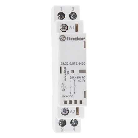 Finder 22 Series Contactor, 12 V dc Coil, 2-Pole, 25 A, 2NC, 250 V ac, 440 V ac - 22.32.0.012.4420