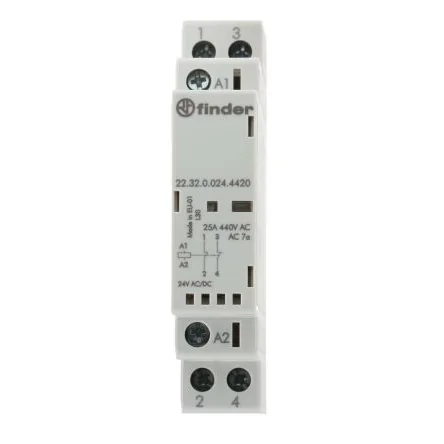 Finder 22 Series Contactor, 24 V ac/dc Coil, 2-Pole, 25 A, 2.2 W, 1NO + 1NC, 440 V - 22.32.0.024.4520