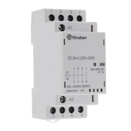 Finder 22 Series Contactor, 240 V ac Coil, 4-Pole, 25 A - 22.34.0.230.4320