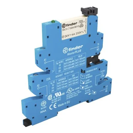39 Series - EMR Screw Terminals. A range of electromechanical relay interface modules from the 39 series from Finder, these relays have a high switching capability. Space saving 6.2 mm wide Connections for 16-way jumper link Integral coil indication and protection circuit Secure retention and easy ejection by plastic clip Dual screw head (blade+cross) terminals 35 mm DIN rail mounting