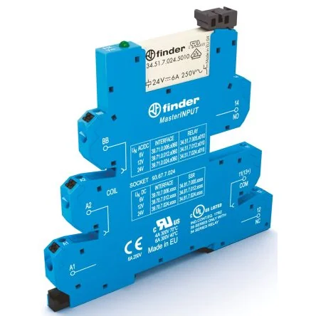 39 Series - EMR Screw Terminals. A range of electromechanical relay interface modules from the 39 series from Finder, these relays have a high switching capability. Space saving 6.2 mm wide Connections for 16-way jumper link Integral coil indication and protection circuit Secure retention and easy ejection by plastic clip Dual screw head (blade+cross) terminals 35 mm DIN rail mounting