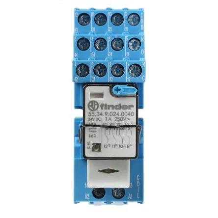 The Finder 58 Series Interface Relay features a 24V dc coil and 4PDT configuration, perfect for PLC and industrial applications.