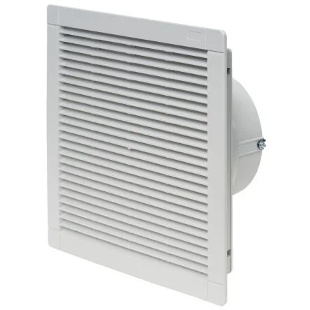 Filter Fan for electrical cabinets and enclosures 120 V or 230 V AC versions.Very low acoustic noise Minimal depth within enclosure Air volume (14…470) m³/h (with Exhaust Filter installed in cabinet) Air volume (24..630) m³/h (free flow) Operating voltage: 24 VDC, 120 V AC, 230 V AC Air conditioners Automatic car-washes Carousel warehouses Control panels